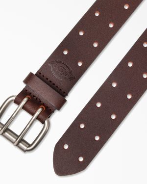 Perforated Leather Double Prong Buckle Belt