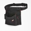 The clever. compact design of the Dickies Work Gear 57059 4-Pocket Tool and Cell Phone allows you to keep connected while on the job. Constructed of durable black canvas. this little tool holder packs a big punch. The largest pocket is capable of holding a large cell phone or a variety of tools. while the 2 exterior pockets are able store smaller tools and accessories. There is an additional neoprene lined slip pocket so you can keep any valuables secured while working. This pouch easily connects to your belt with its snap-back flap allows for easy attachment to a number of types of work belts. The 3-inch back flap is designed to be used with work belts up to 3 inches in size.