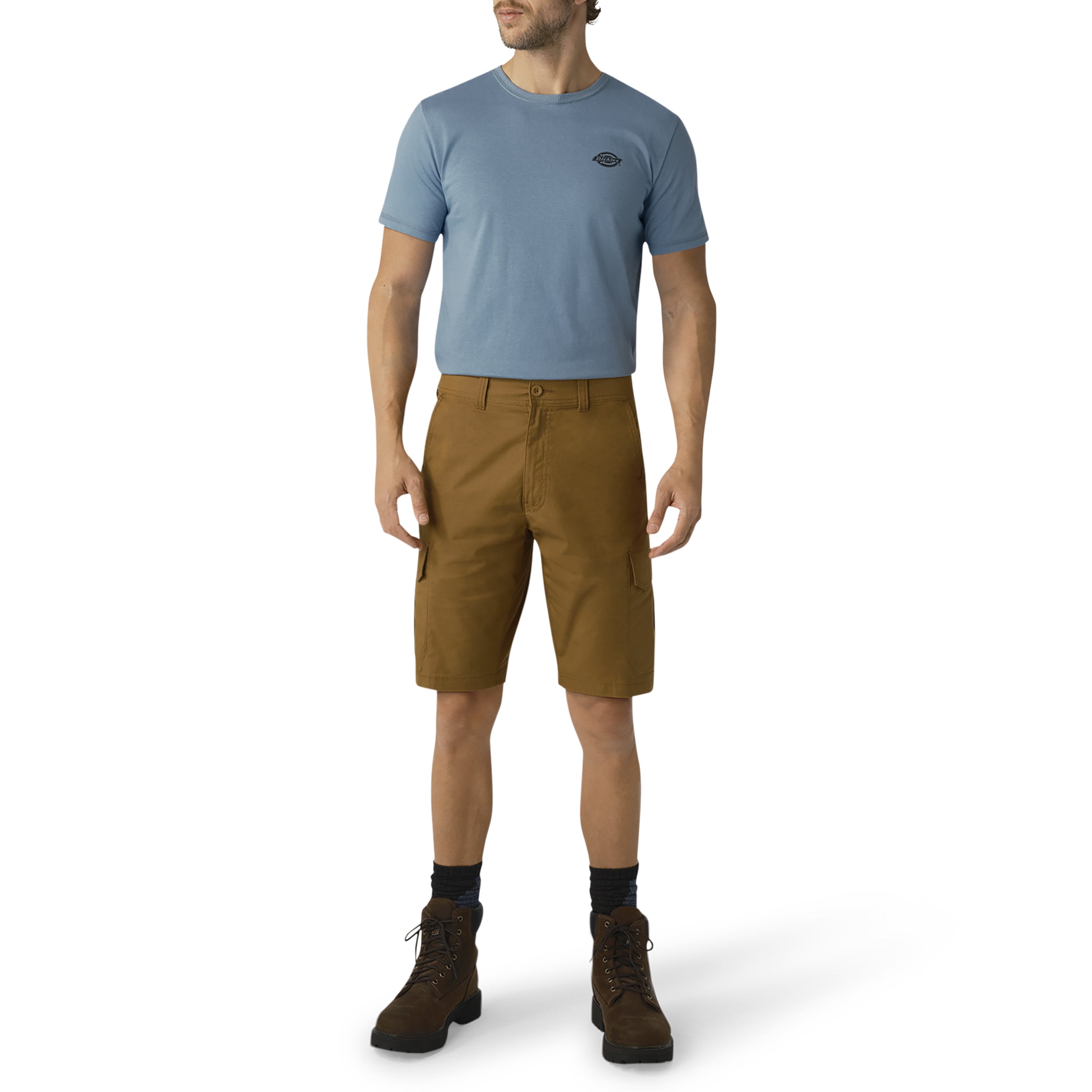 You can keep cool no matter what the situation with these Men’s’ FLEX Cooling Regular Fit Cargo Shorts 11. The innovative Temp-iQ® finish helps regulate your temperature by providing active cooling when you need it most. Mesh pockets hold your essential workplace gear safely stored while letting air flow through for a comfortable fit. Rugged ripstop fabric stays sturdy. even in strenuous jobs. And the FLEX fabric. Active Waistband. 11 inseam. and easy regular fit let you move freely. These cargo shorts ensure you can get the job done even in challenging and hot weather conditions.